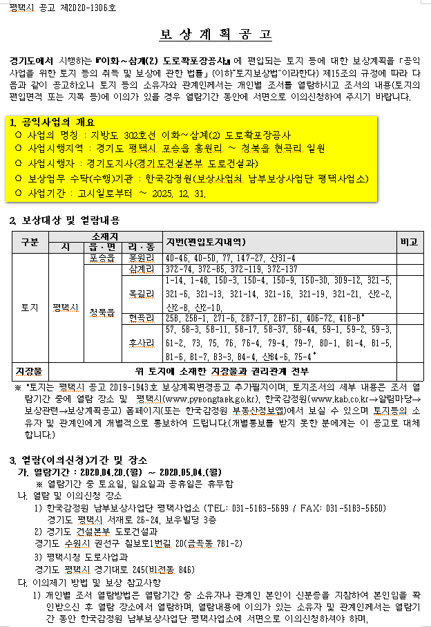 (보상사업처 남부보상사업단 평택사업소)