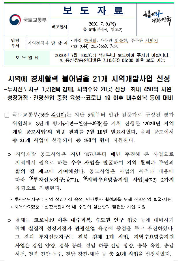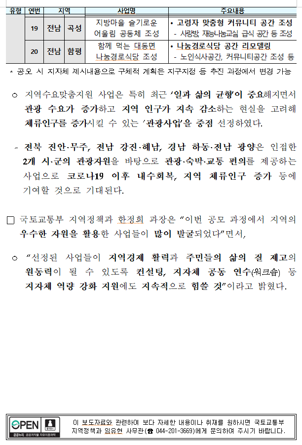 21개 지역개발사업 선정