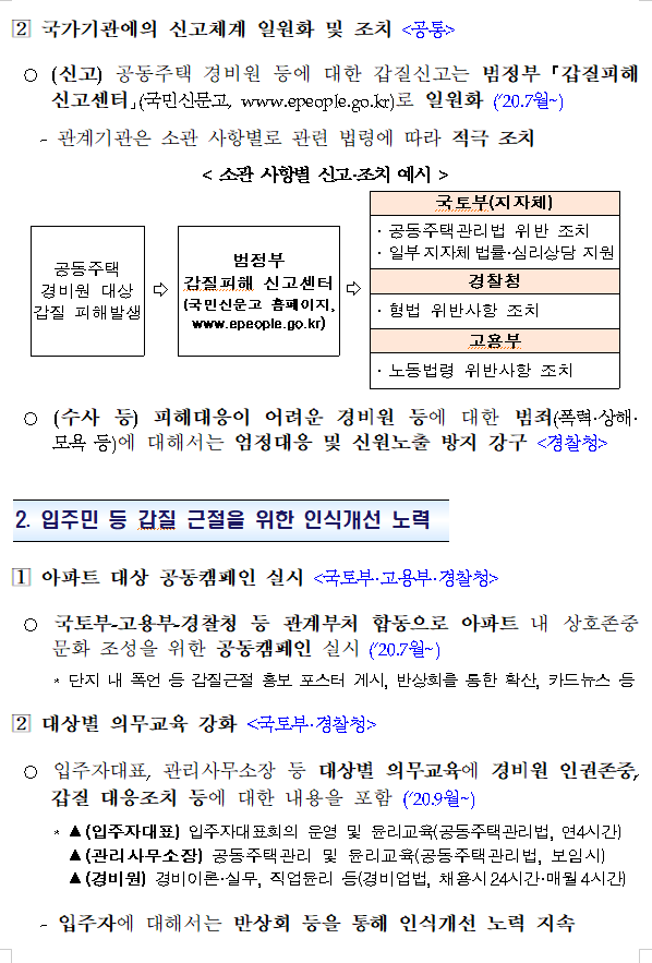 ‘공동주택 경비원 제도개선 TF’를 구성하고,
