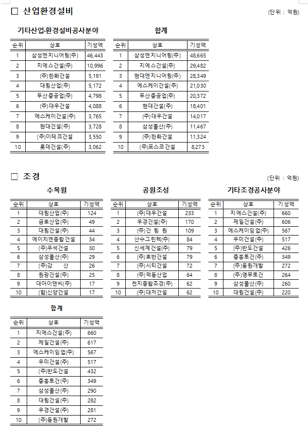 그 뒤를 이어 지에스건설㈜(10조 4,669억 원)이