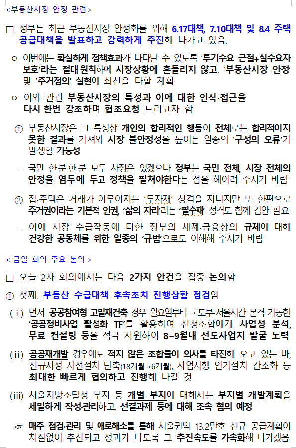 ➊ 부동산 수급대책 후속조치 진행상황 점검
