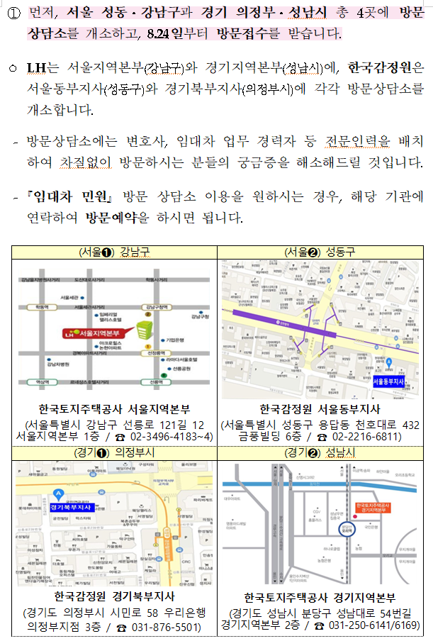 총 4곳에 방문상담소를 개소하고,
