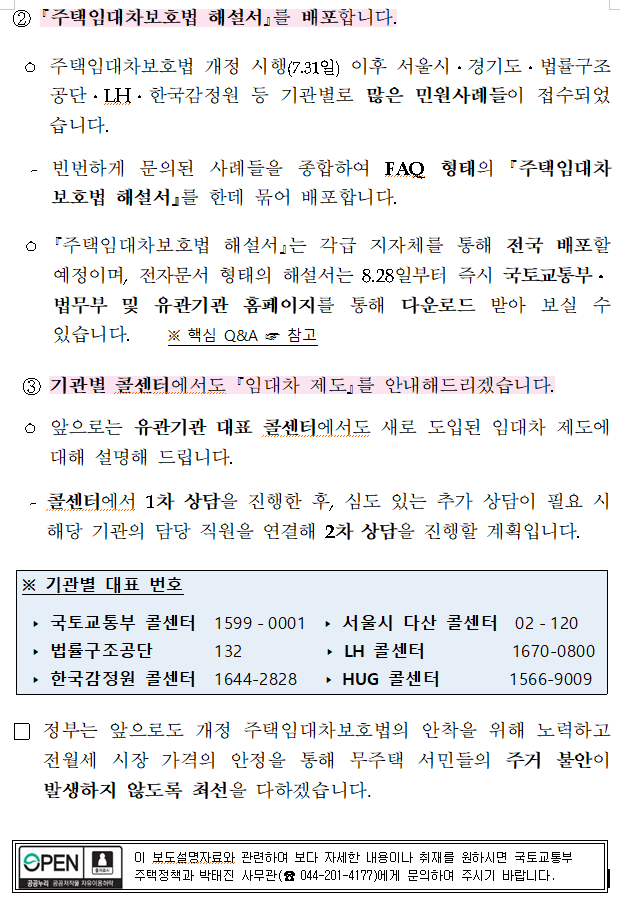 ② 주택임대차보호법 해설서를 배포합니다.