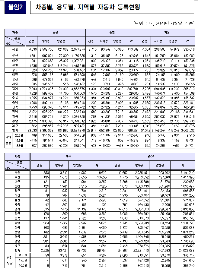 24,023,083대, 이륜자동차 226만 대 제외)를