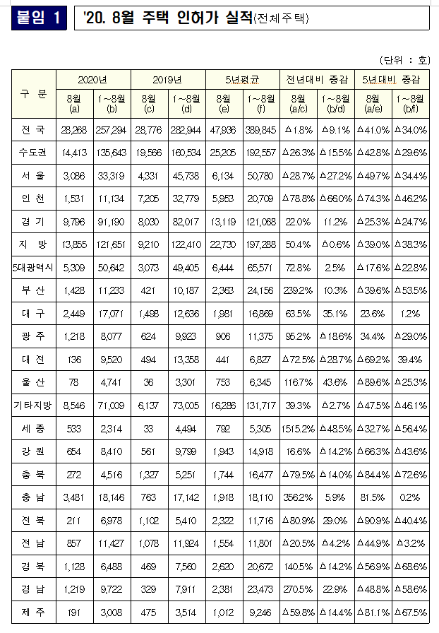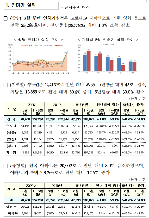 - 2020년 8월 주택 인허가 2.8만 호,