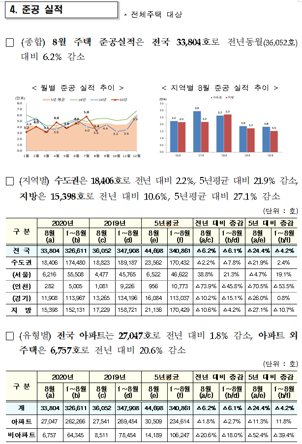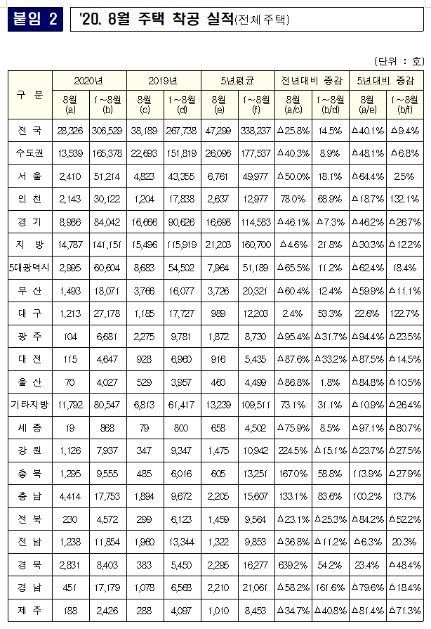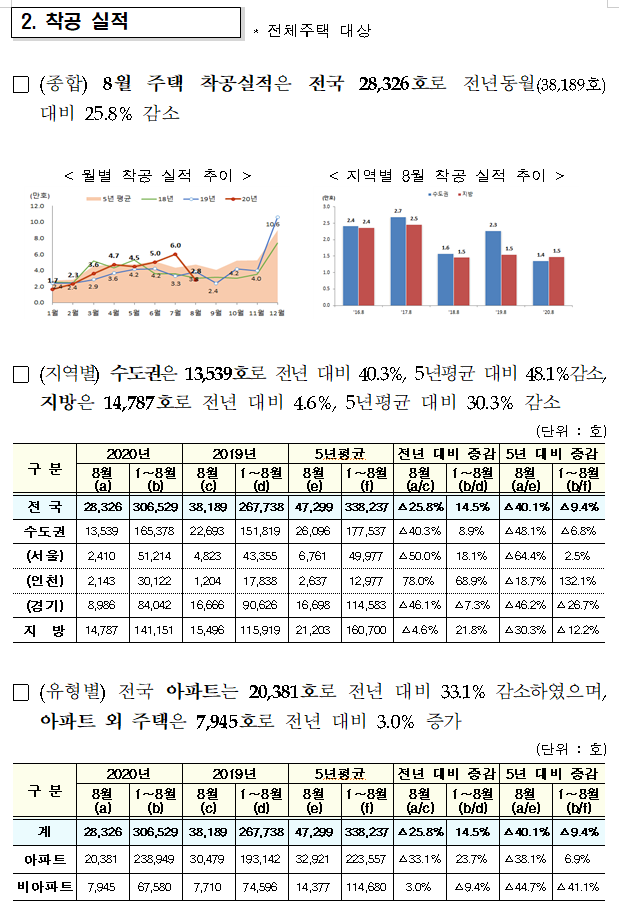(종합) 2020년 8월 주택 착공실적은