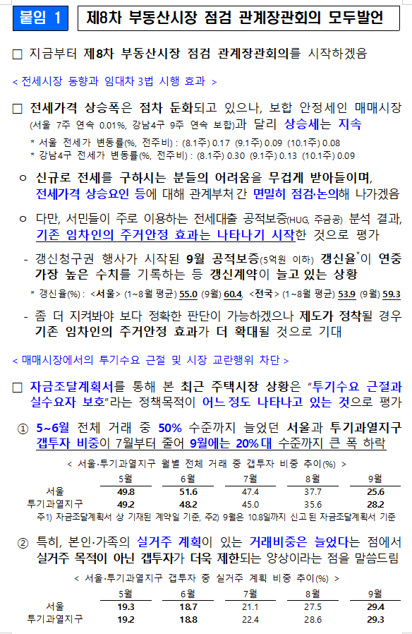 제8차 부동산시장 점검 관계장관회의 개최