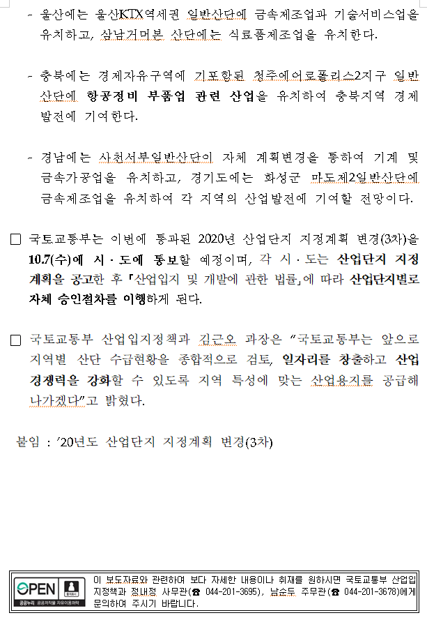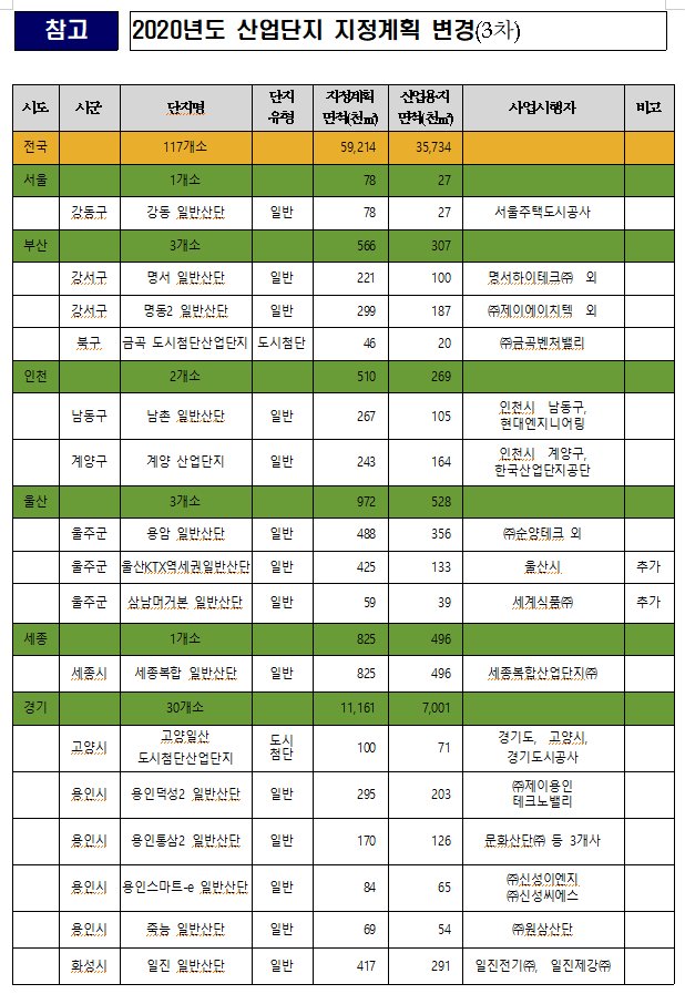 2020년도 산업단지 지정계획 변경(3차)에는