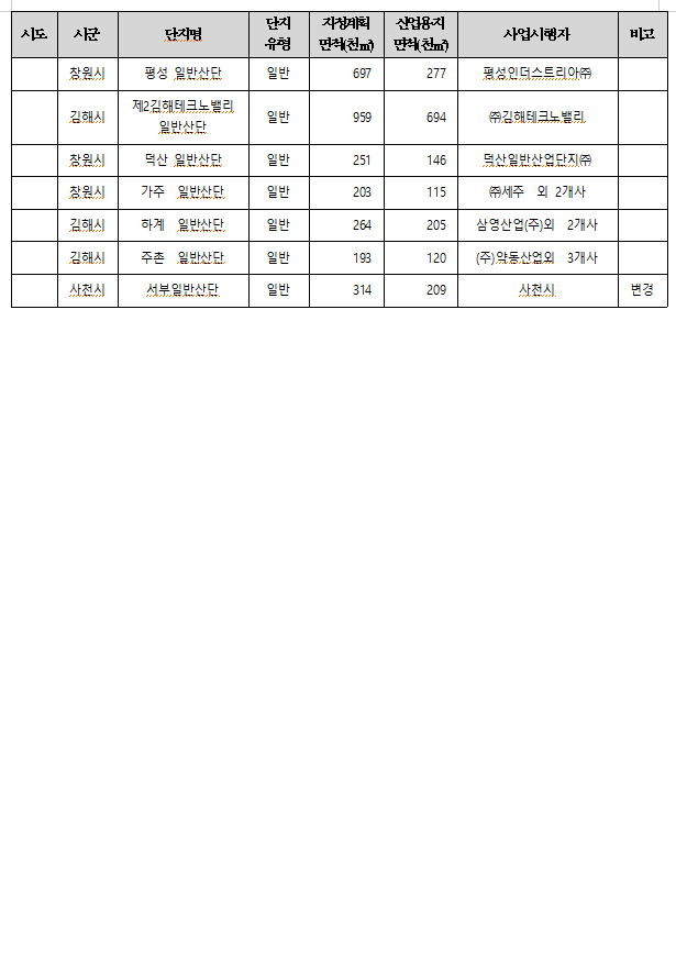 변경 3개소, 신규 산단 9개소}