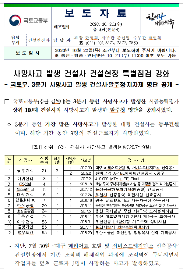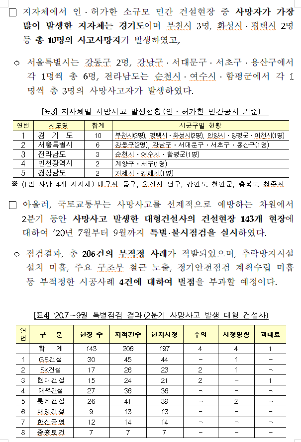사망사고 발생 건설사.발주청.지자체