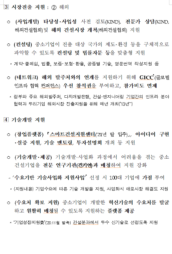 기술개발 및 국내·해외시장 개척 등