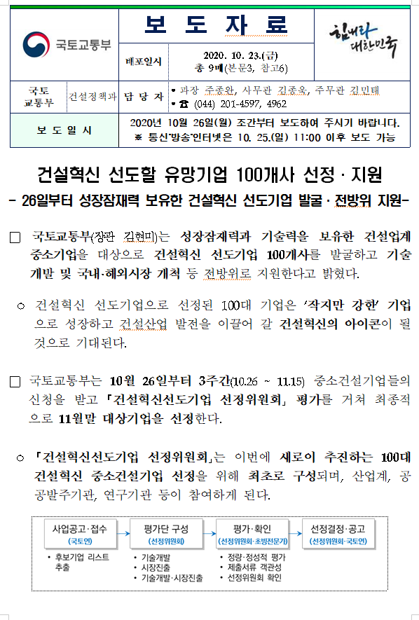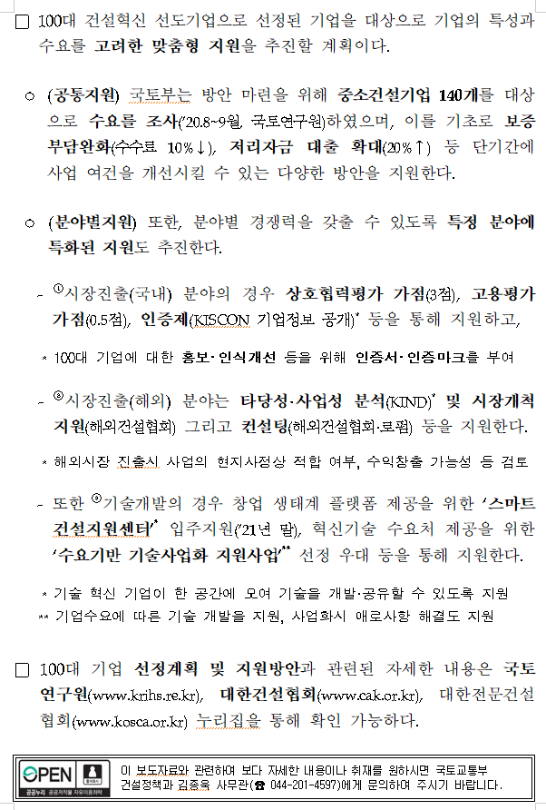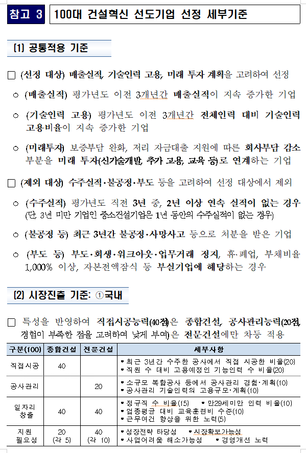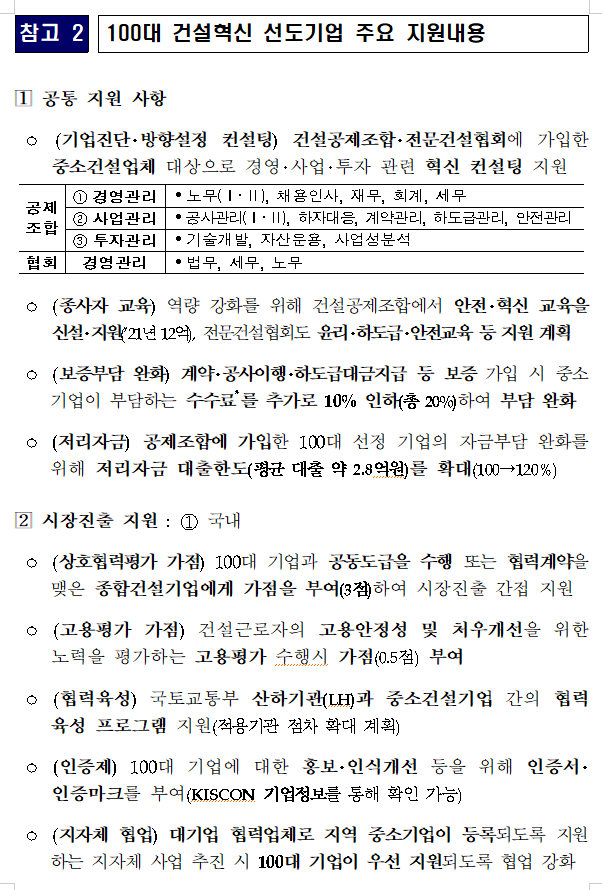 건설혁신 선도할 유망기업 100개사 선정.지원