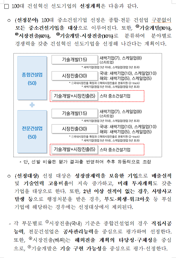 건설혁신 선도기업 100개사를 발굴하고