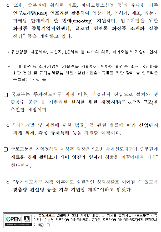 ’오송화장품산업단지‘ 조성을 위한