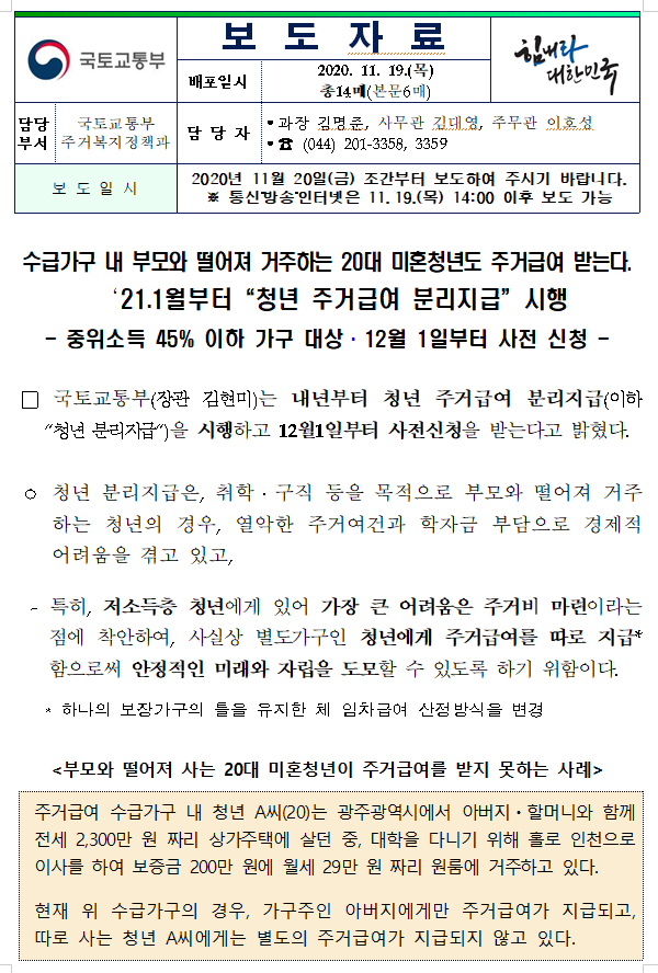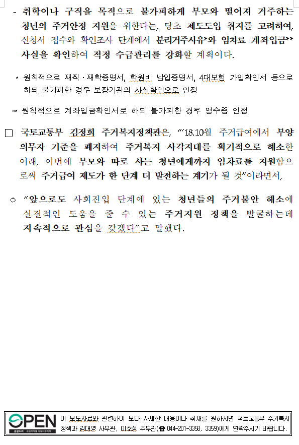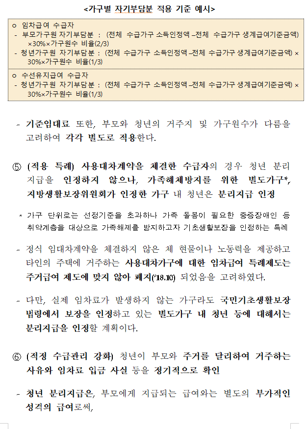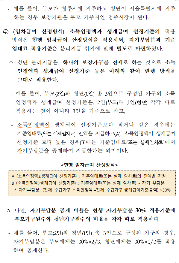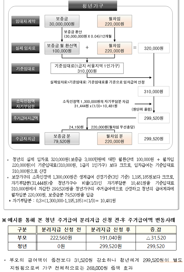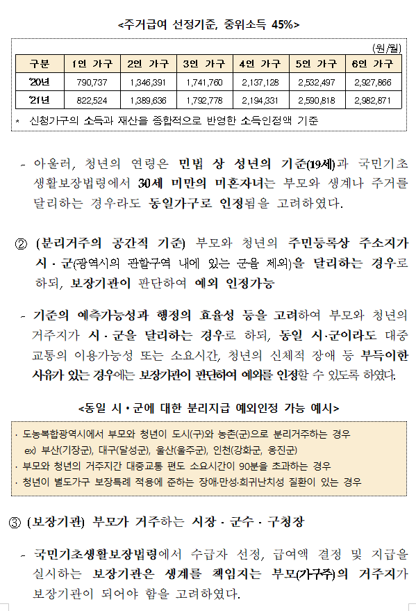 - 2021년 1월부터 “청년 주거급여 분리지급” 시행