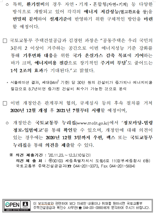 - 2021년 7월부터 강화된 에너지성능기준 시행…