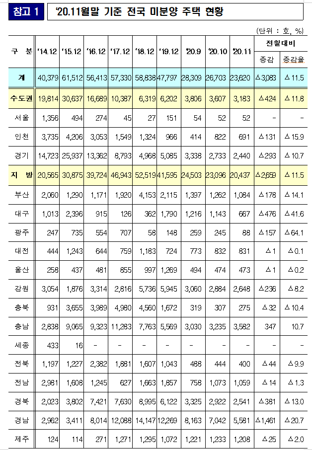 2020년 11월말 미분양은