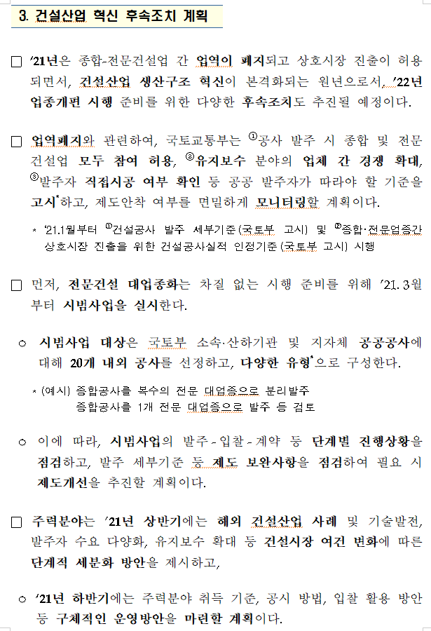 건설산업 혁신방안 후속조치로