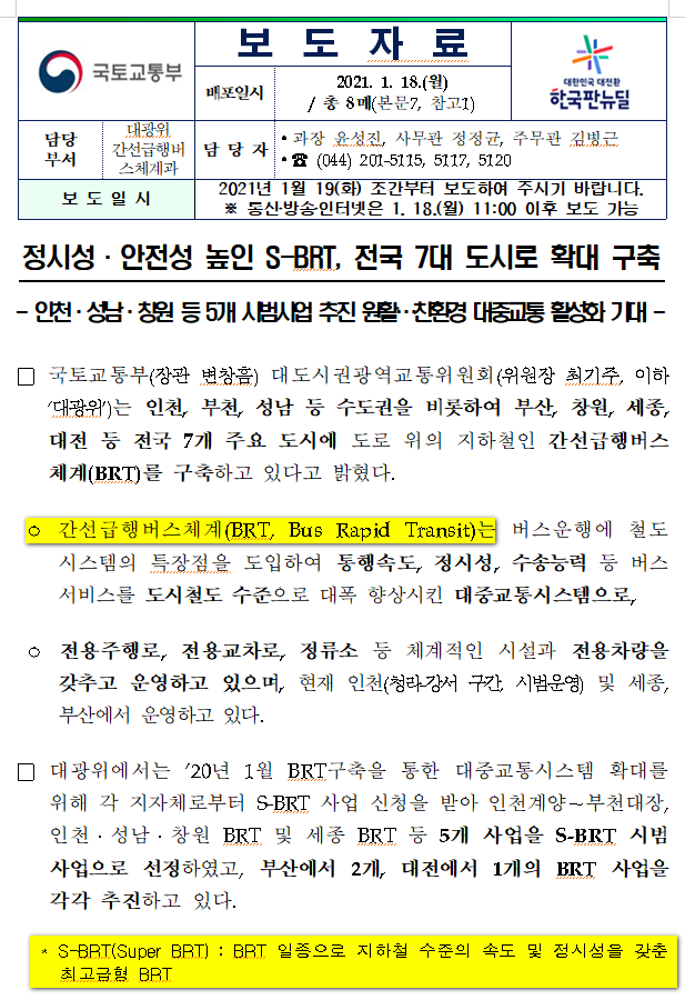 * S-BRT(Super BRT)는 : BRT 일종으로