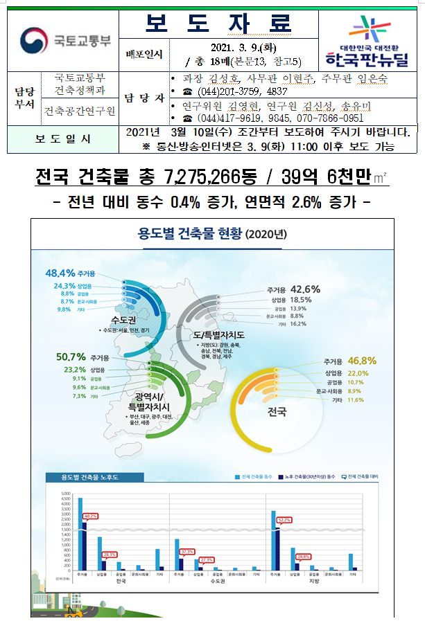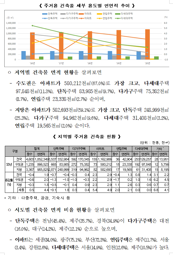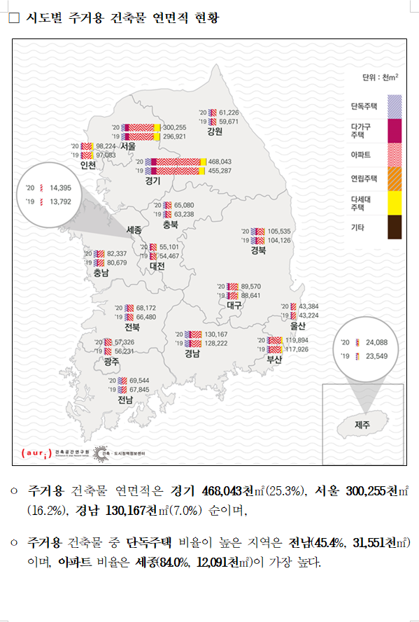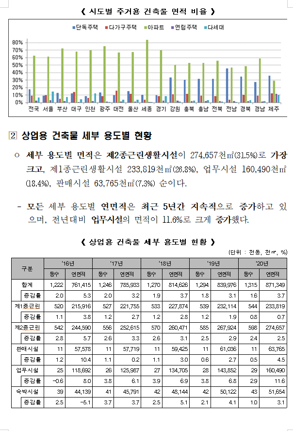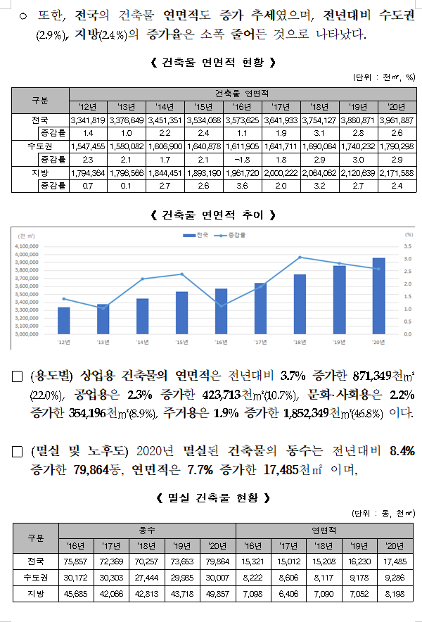 지방은 23,071동(50,949천㎡) 증가한