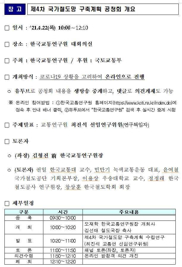 「제4차 국가철도망 구축계획(안)」에 대한
