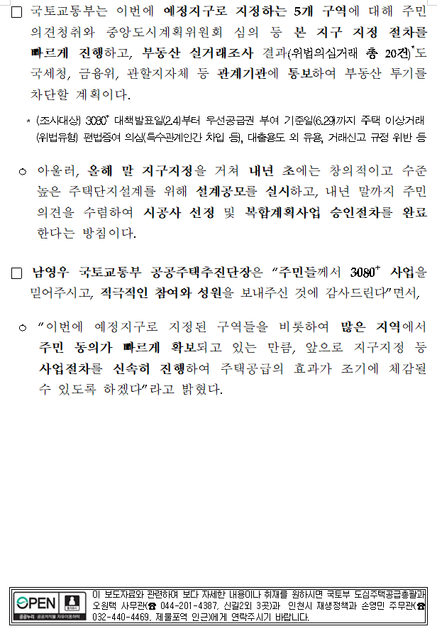 (2021.2.4, 이하 “3080+ 대책”)」 등을 통해