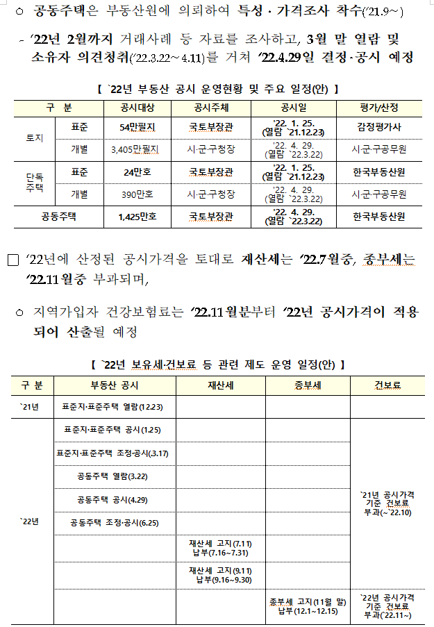 부담 완화방안 마련, 2022년 3월 발표 계획