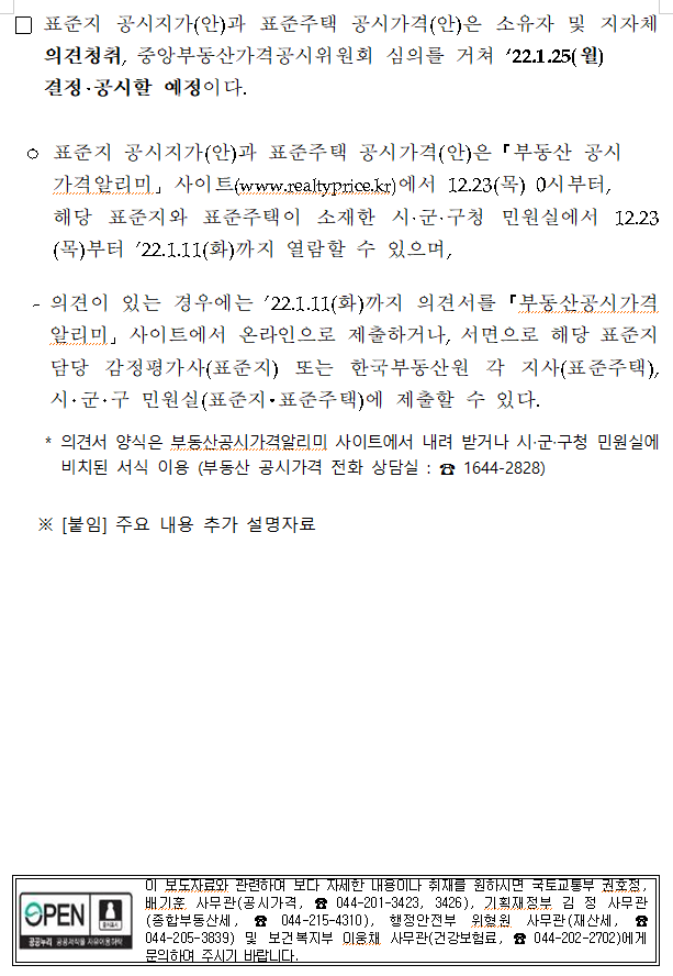 2022년 표준주택 공시가격(안) 열람
