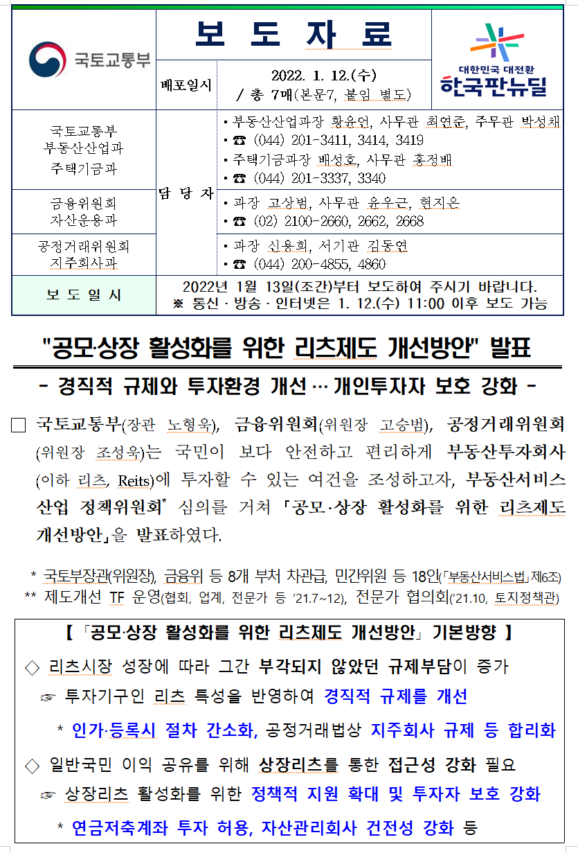 | 공모.상장 활성화를 위한 리츠(REITs)제도 개선방안 (0) | 2022.01.28 |