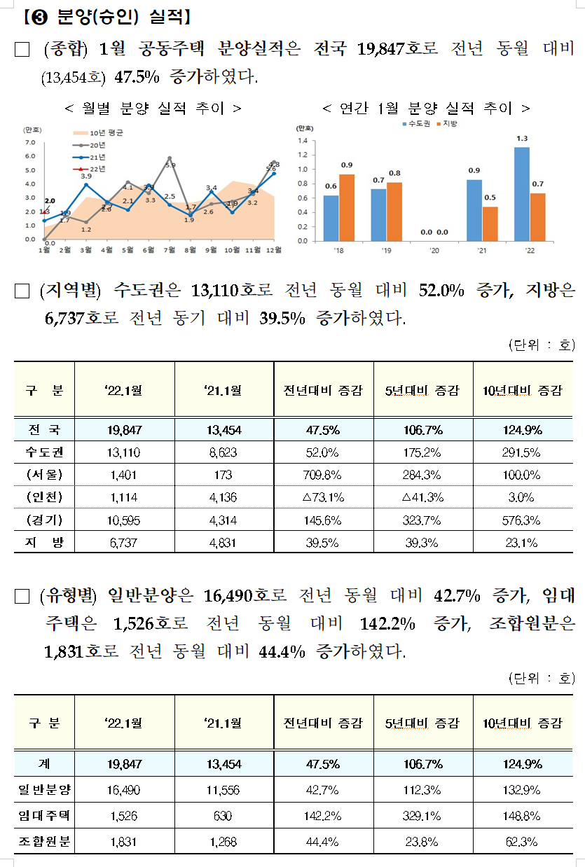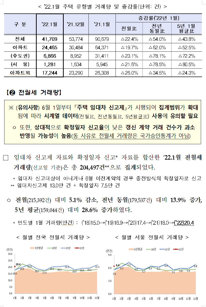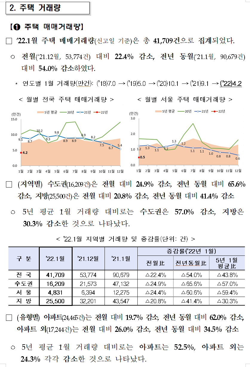 2022년 1월 주택 매매거래량 4.2만 건으로