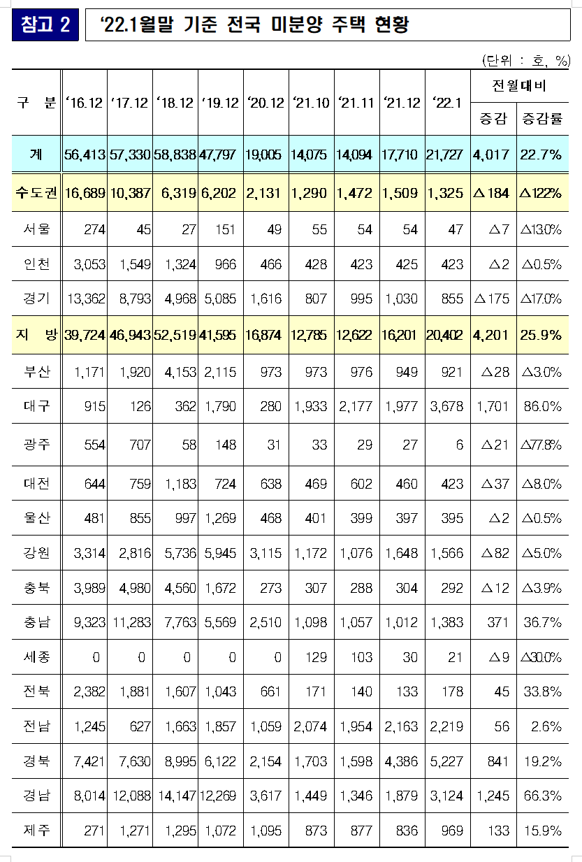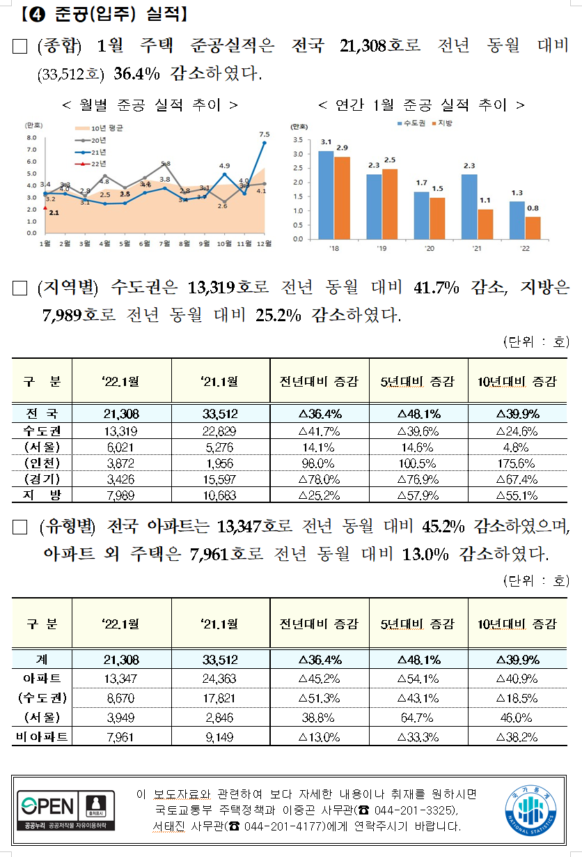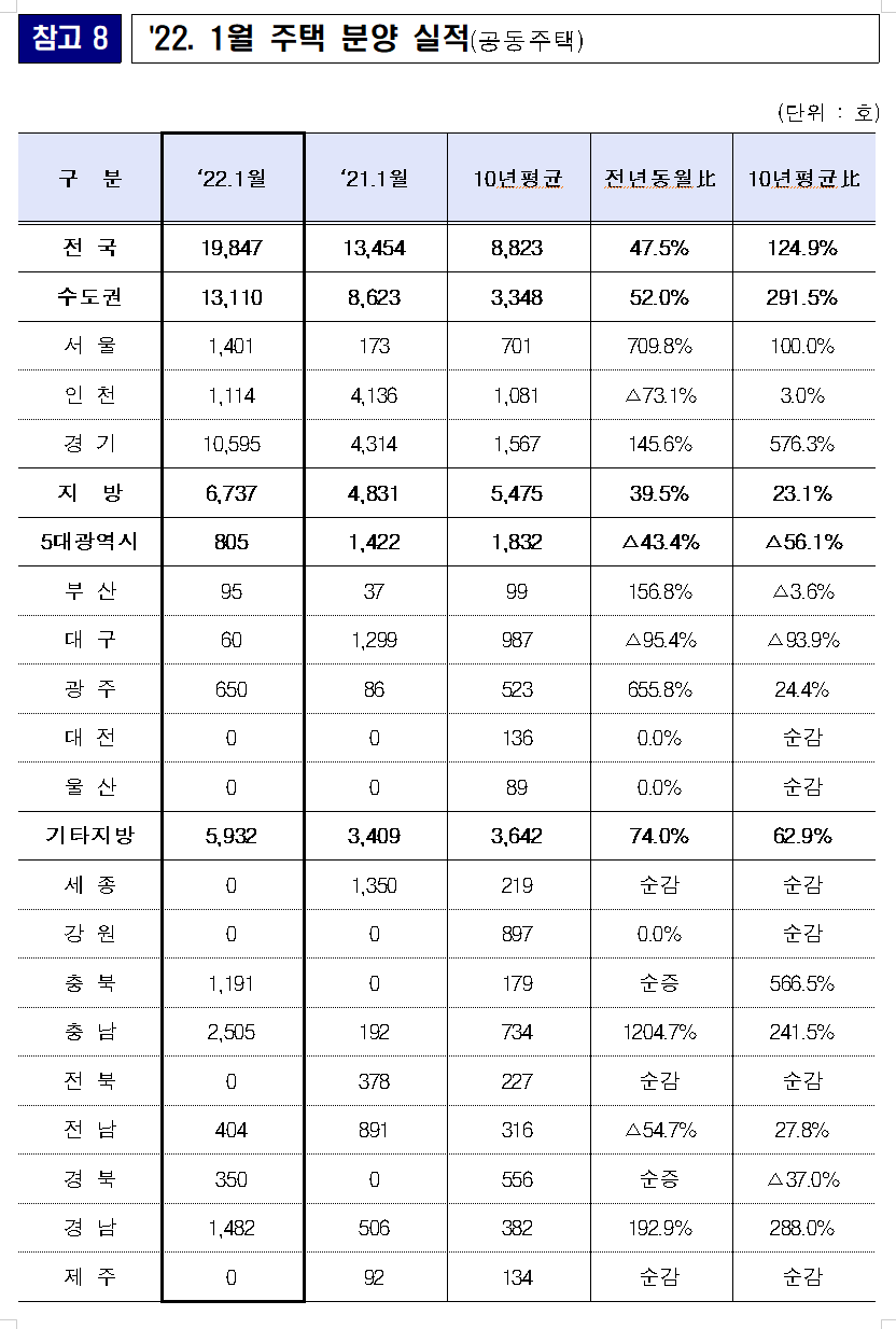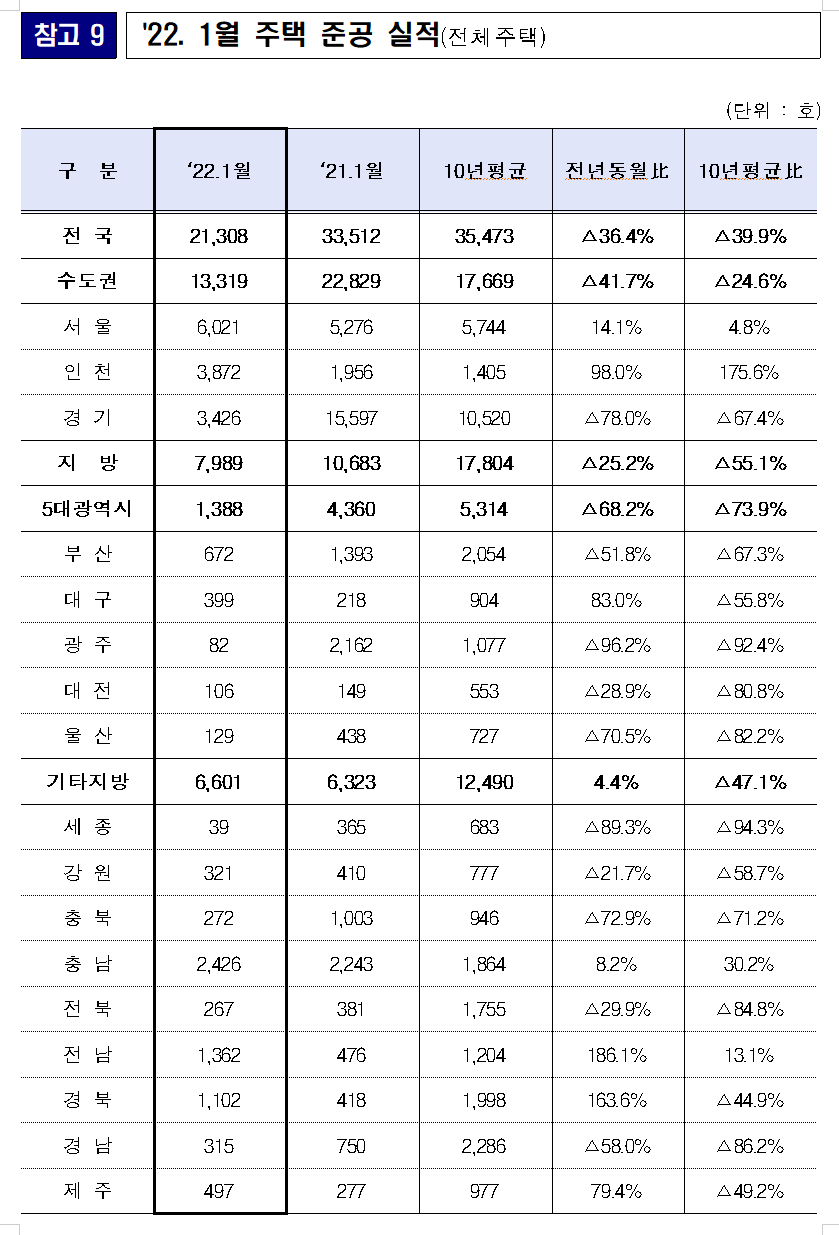 2022년 1월 주택 매매거래량 4.2만 건으로