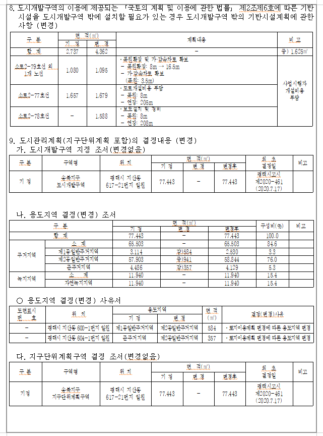 개발계획(1차) 변경 수립 및 실시계획인가 고시된