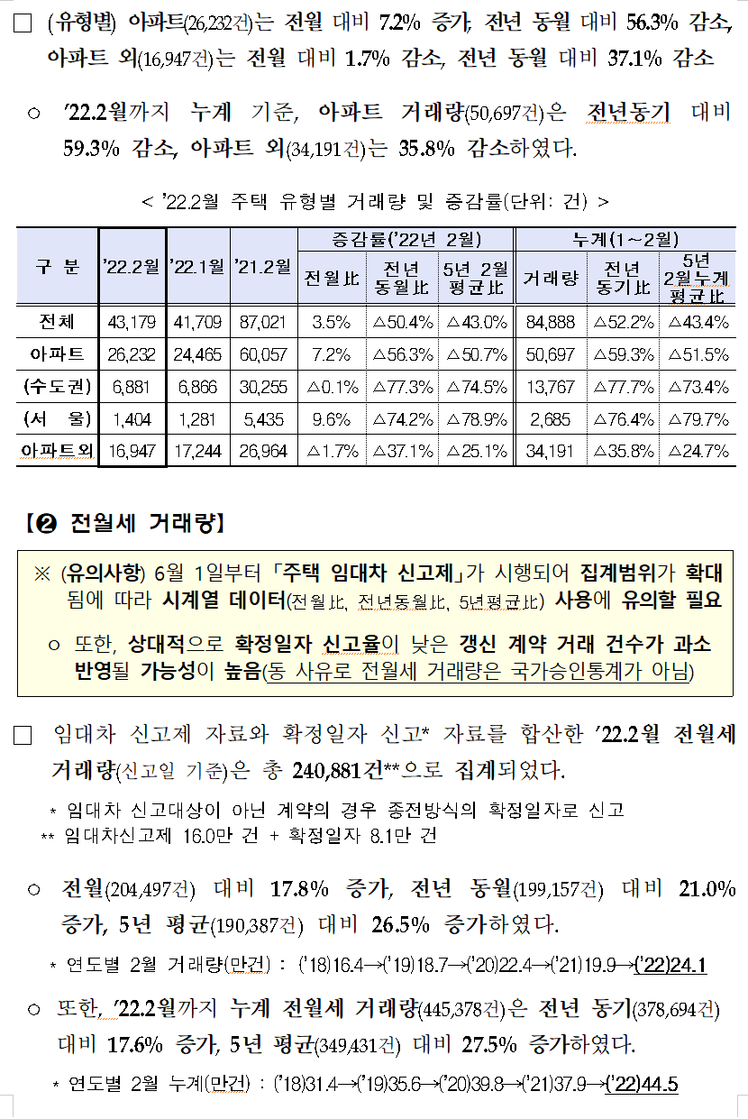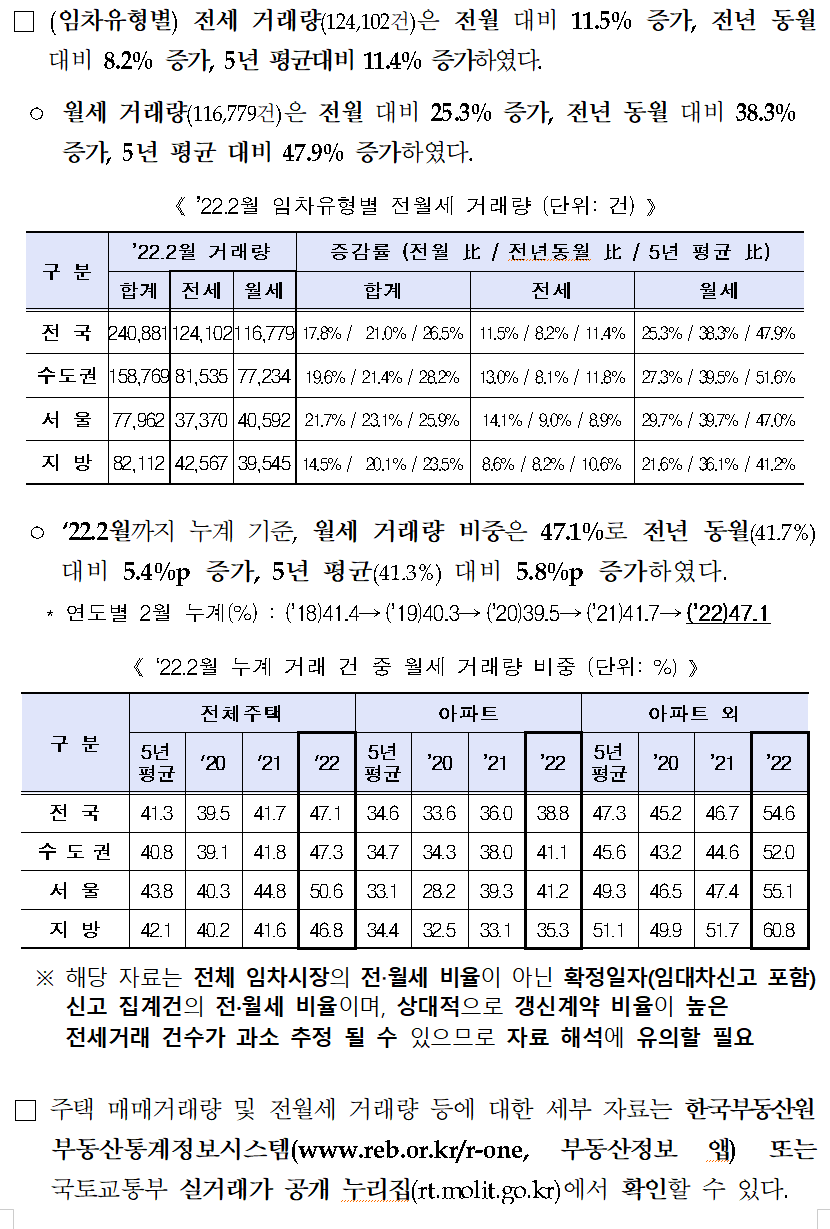2022년 2월 전월세 거래량 24.1만 건으로