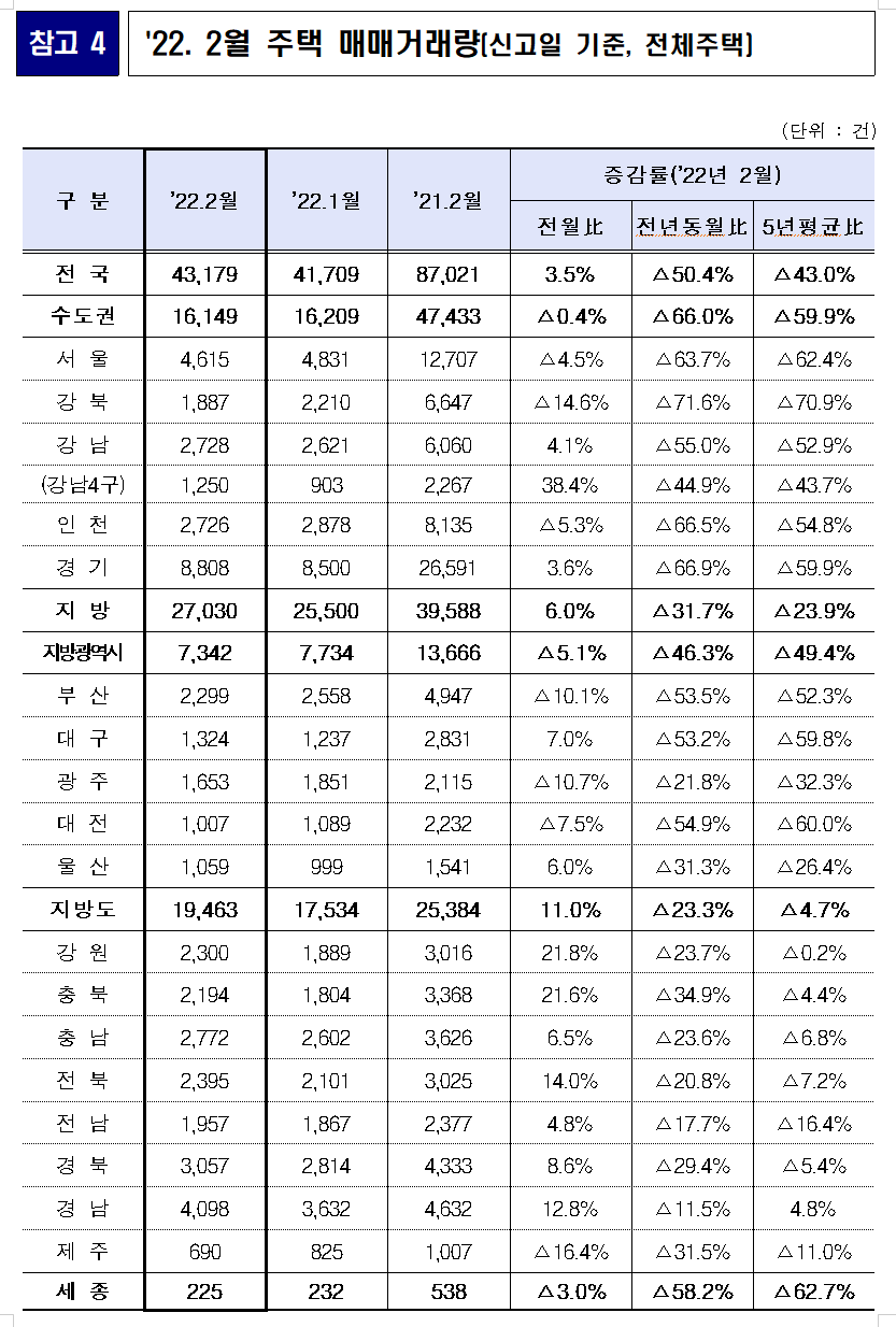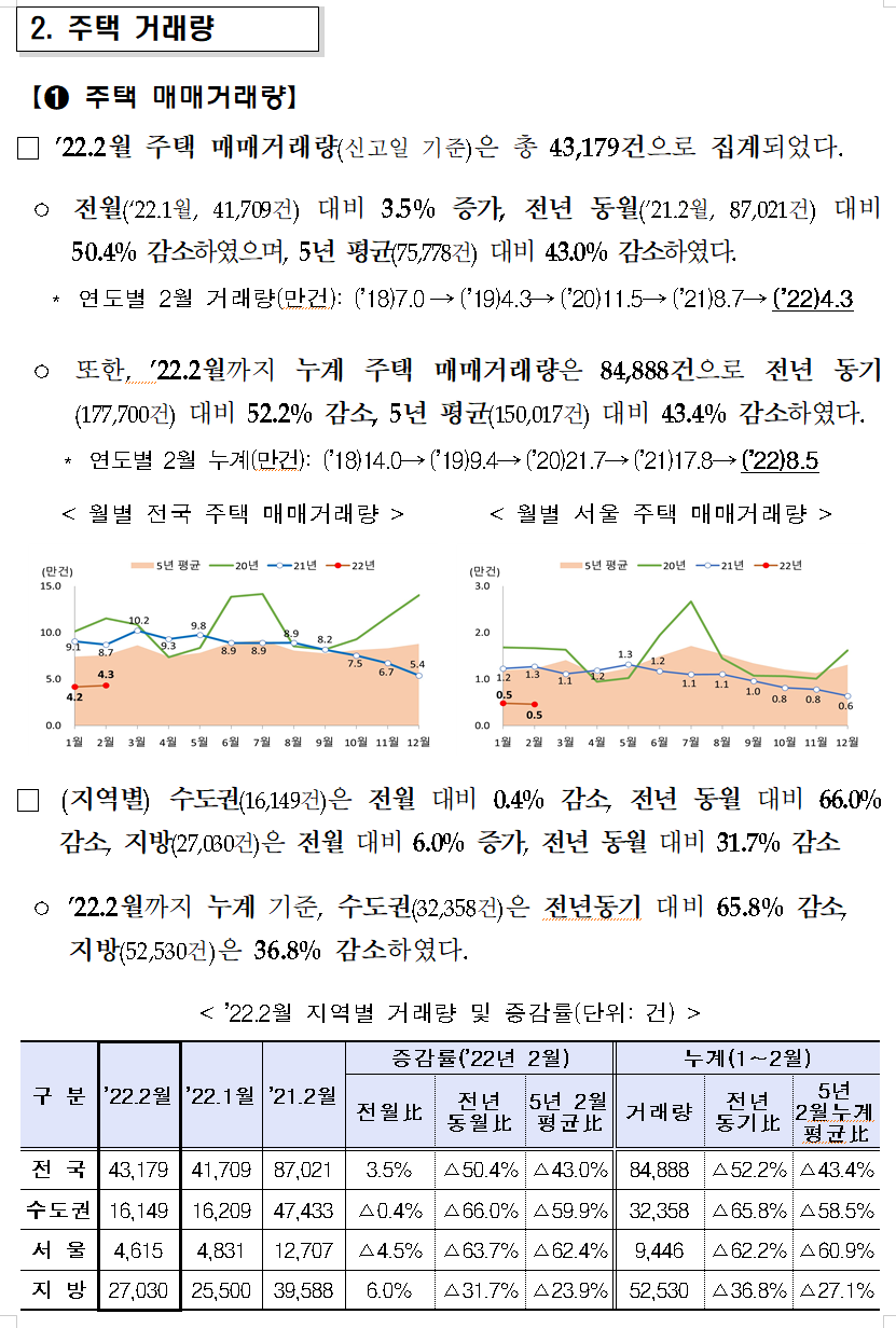 2022년 2월 주택 매매거래량 4.3만 건으로