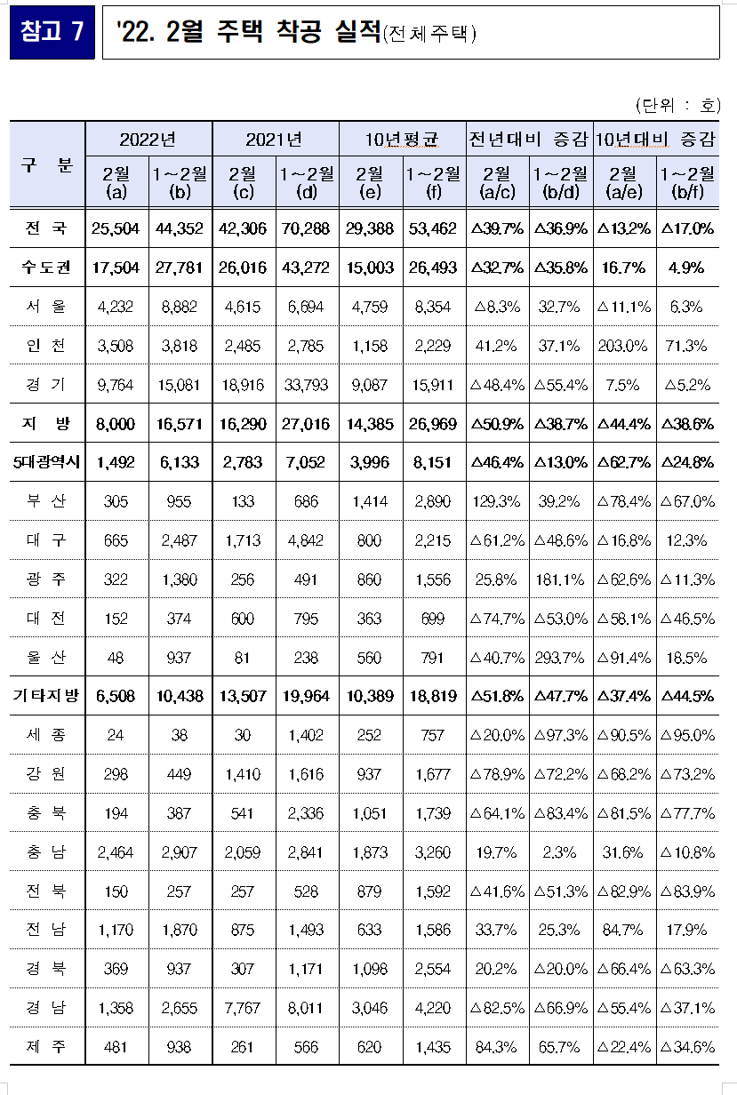 - (2022년 2월 주택건설실적)