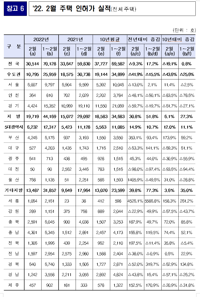 2022년 2월 누계 인허가는 7.0만호로