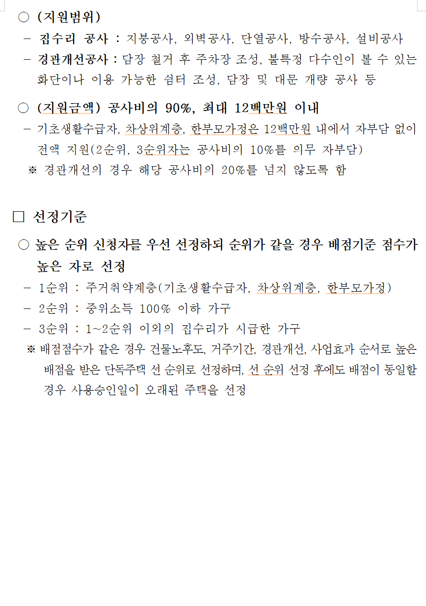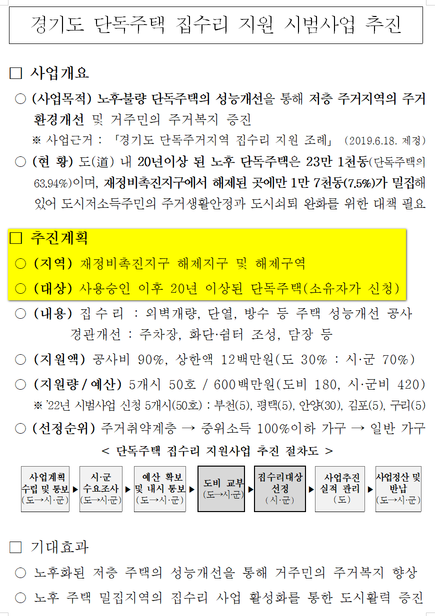 집수리 지원 시범사업 총 50호 추진