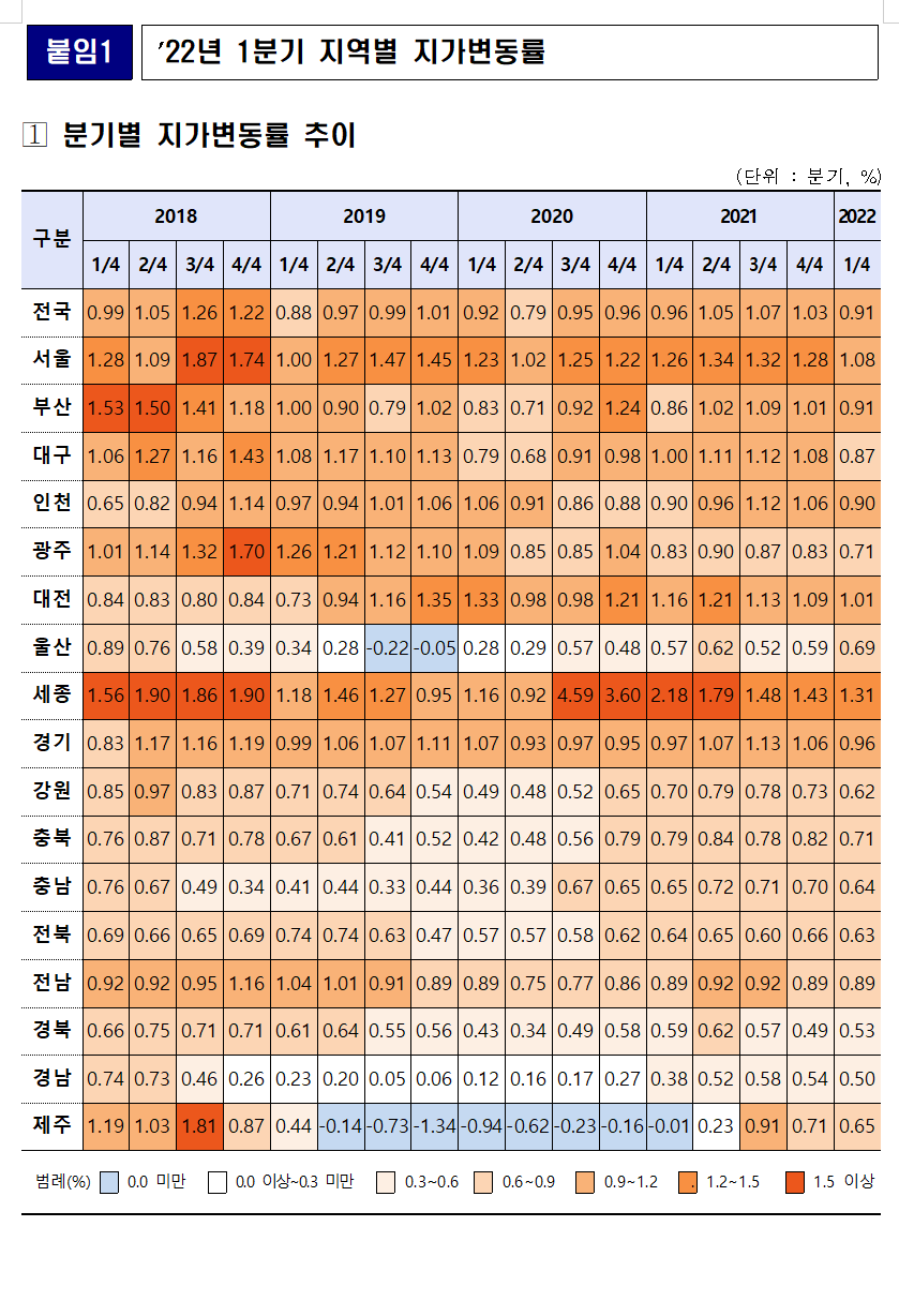 2022년 1분기 지가변동률,