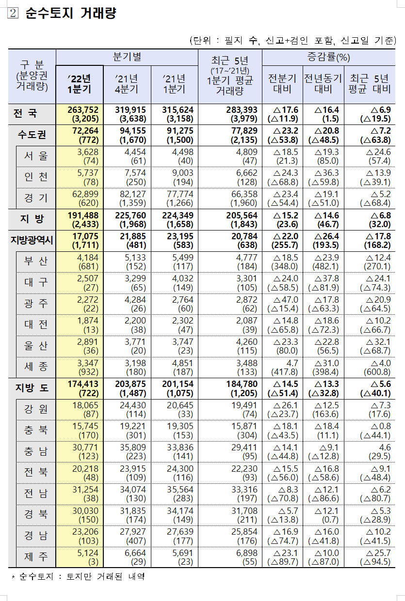 2022년 1분기 토지 거래량