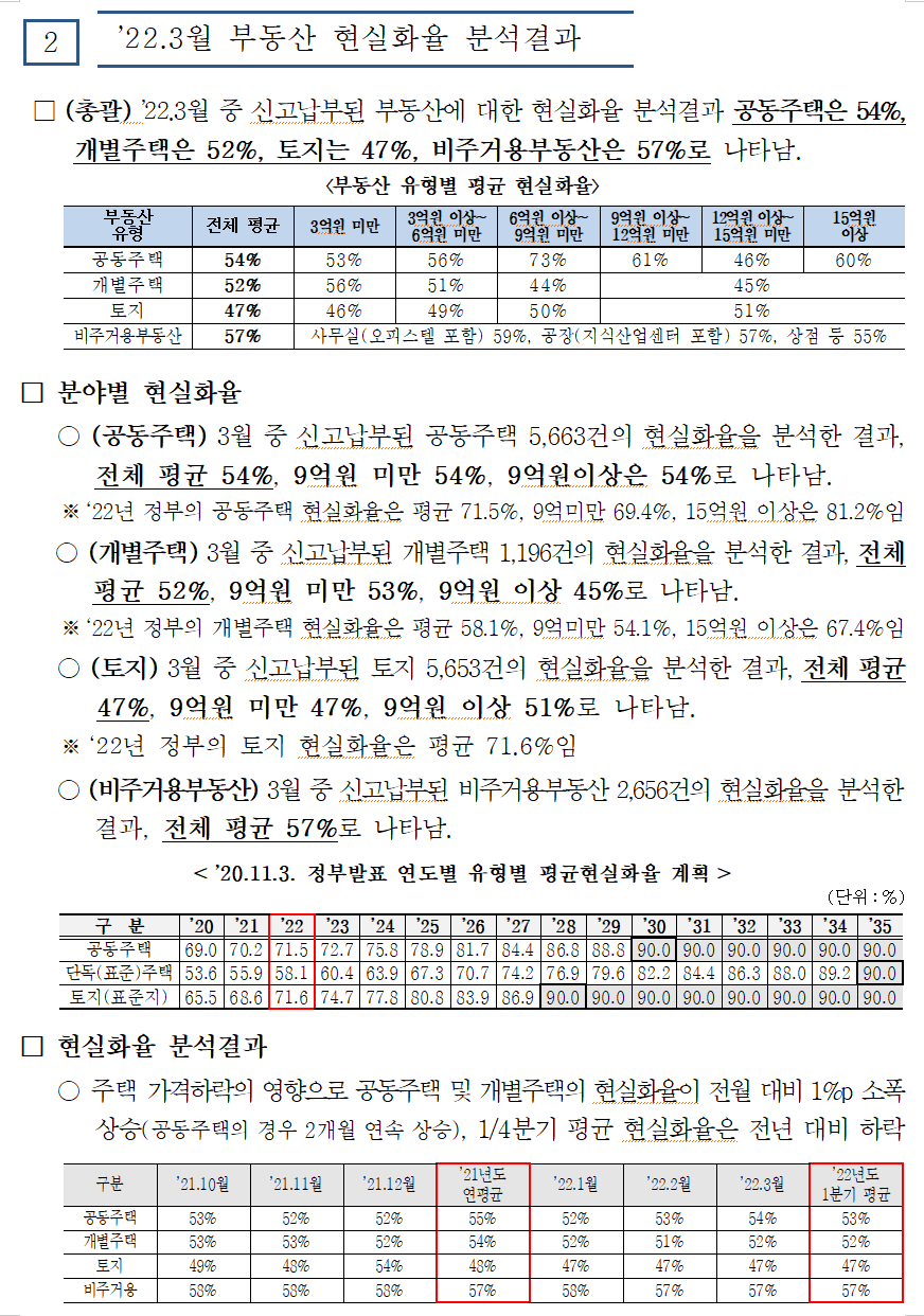 정부가 목표한 2022년 현실화율은