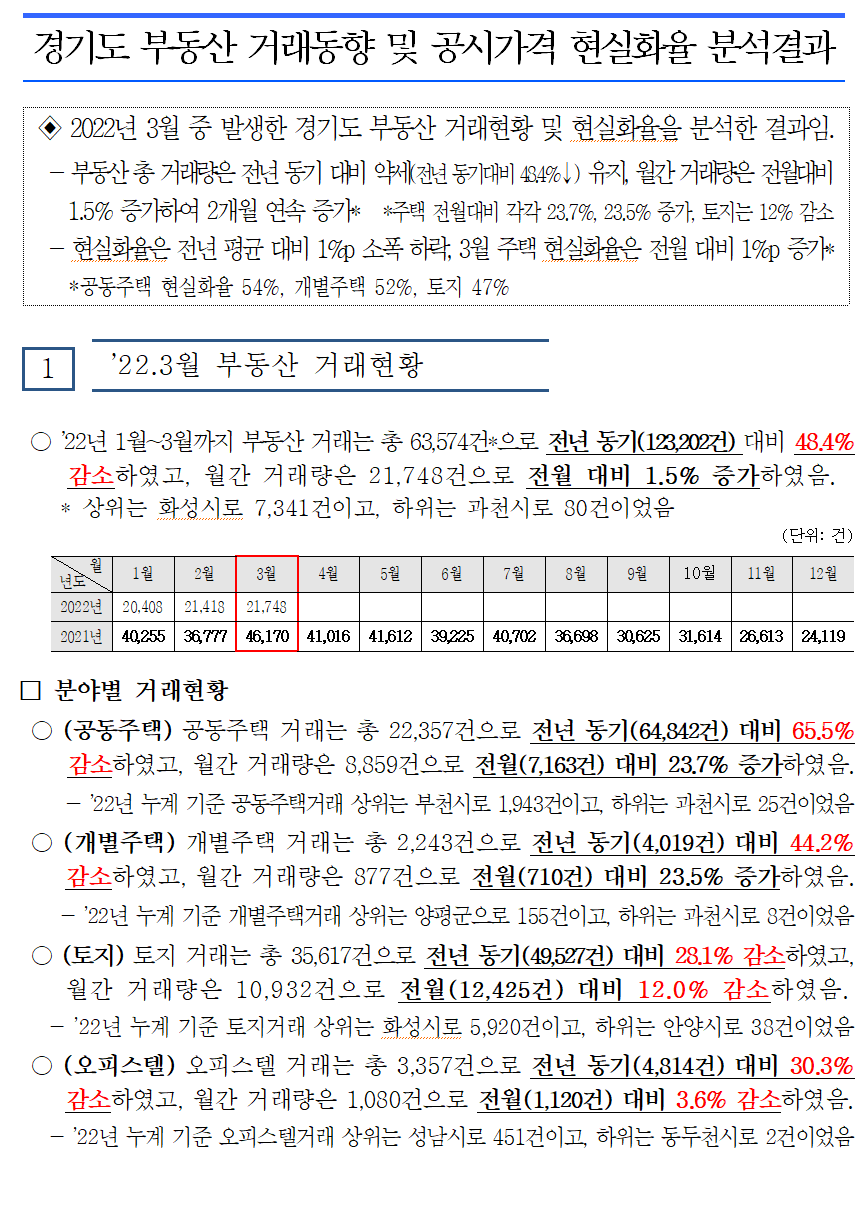 ○ 경기도 2022년 1/4분기 부동산