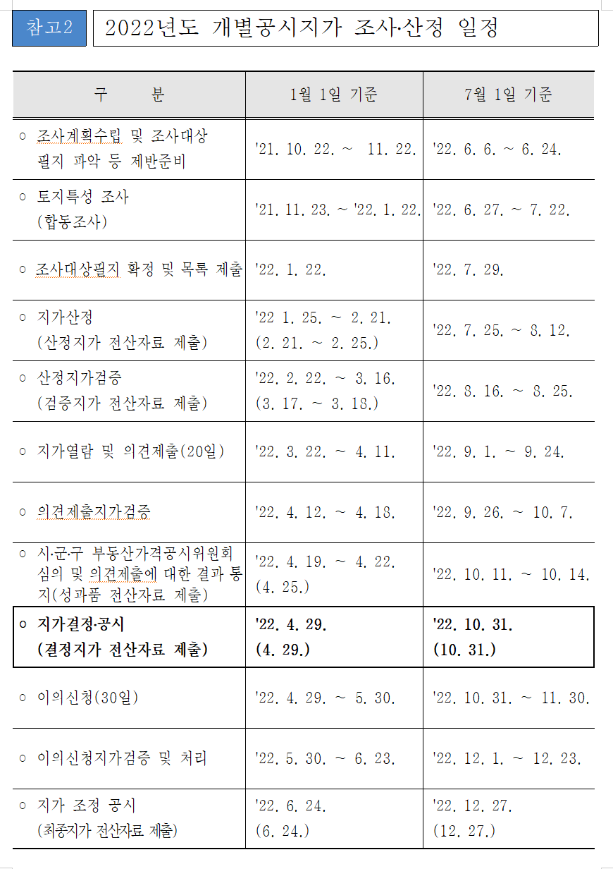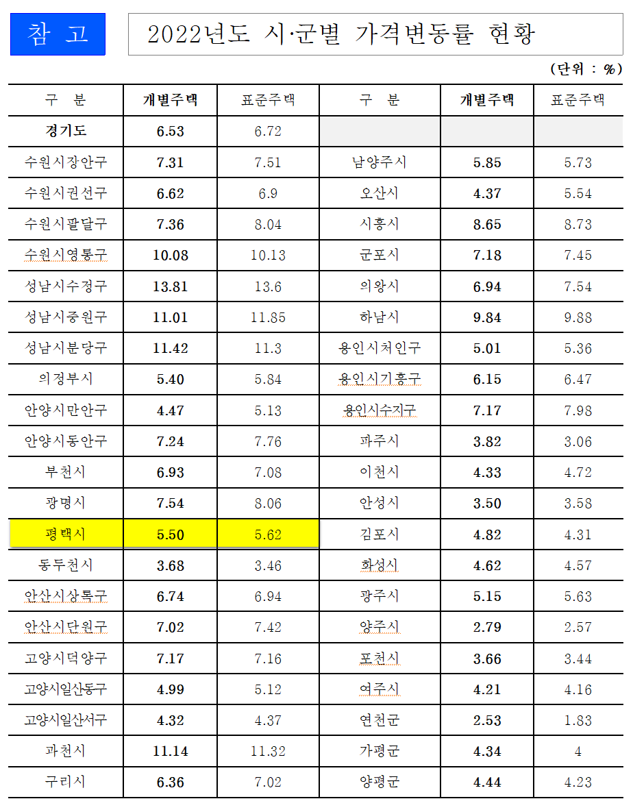 ○ 경기도, 2022년 개별공시지가