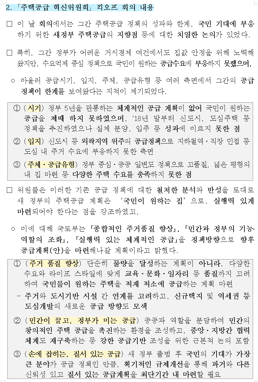 국민이 원하는 곳에 원하는 주택을 공급할 것