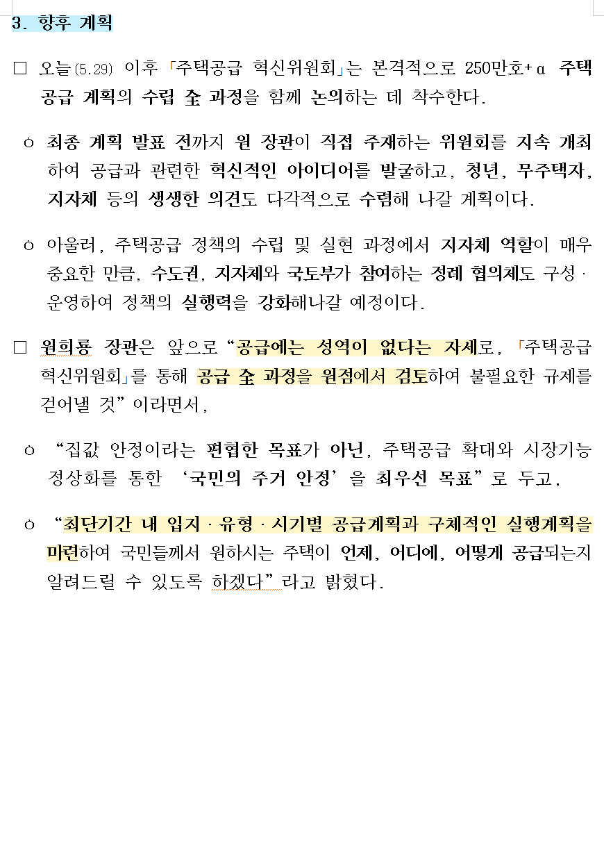 ㅇ 위원회에는 주택공급 정책과 관련한