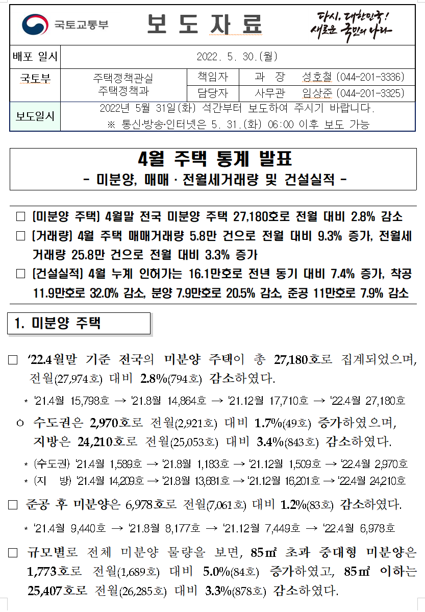 | 국민이 원하는 실행력 있는 주택공급 대책, 민간과 함께 만들겠습니다. (0) | 2022.05.30 |