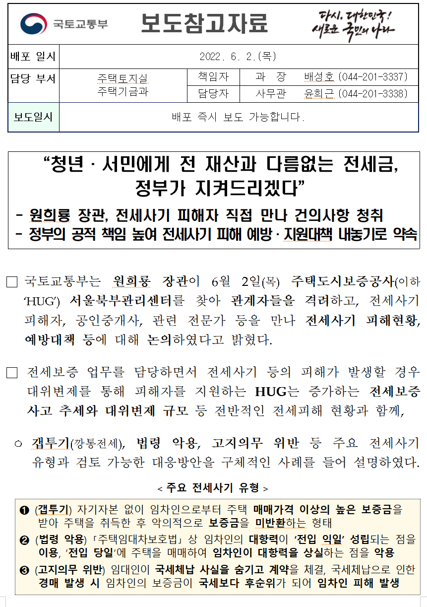 - 원희룡 장관, 전세사기 피해자 직접 만나