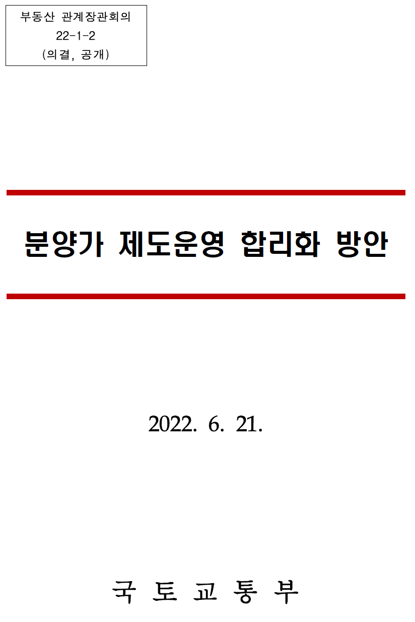 | 제1차 부동산 관계장관회의 개최 - 관계부처 합동브리핑 발표문 - (0) | 2022.06.24 |