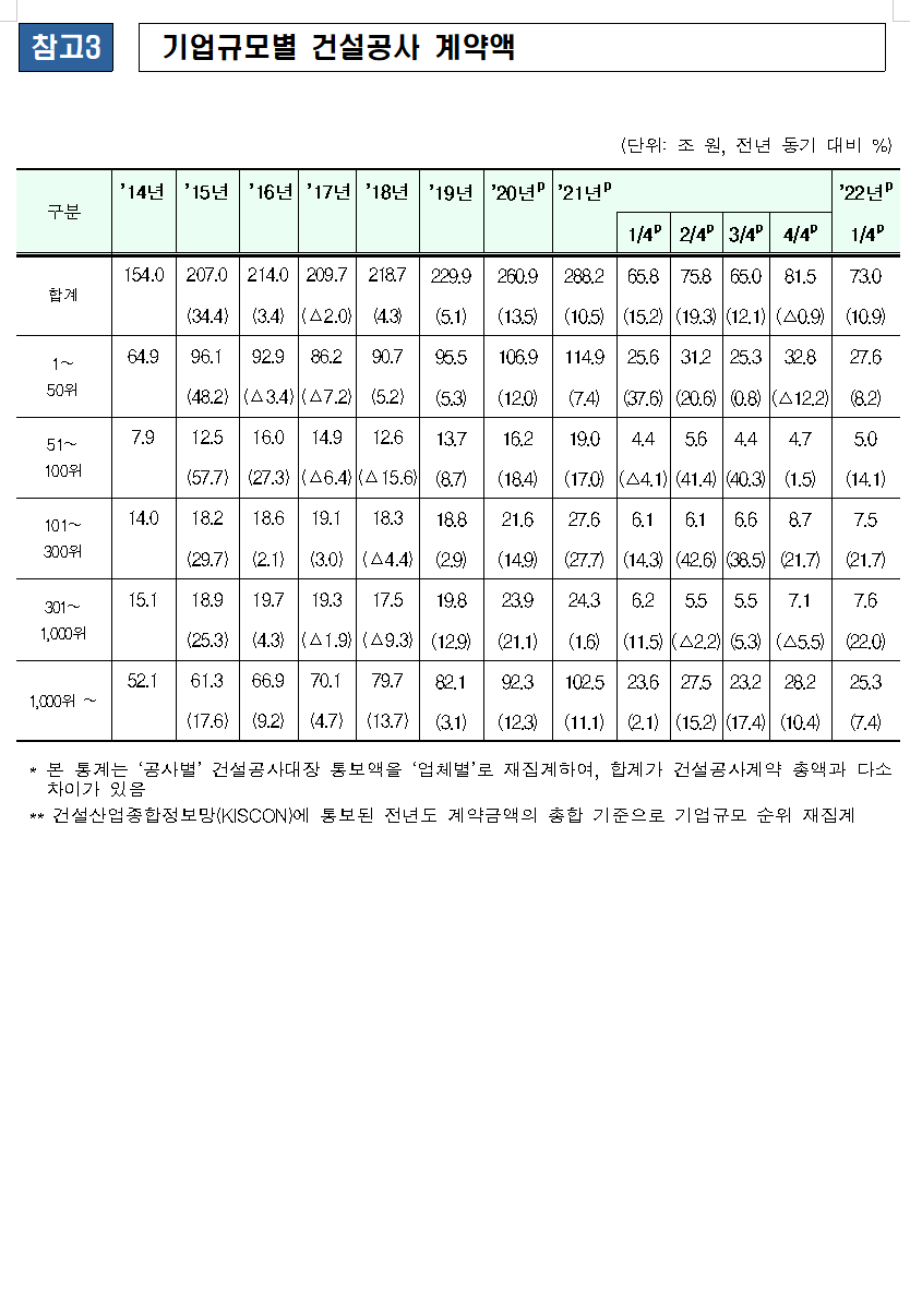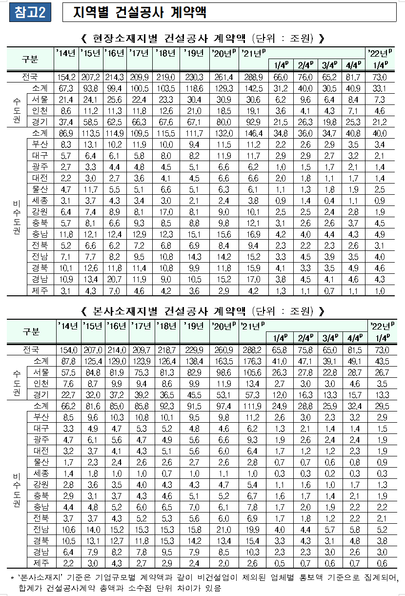 2022년 1분기(1~3월) 건설공사 계약액은