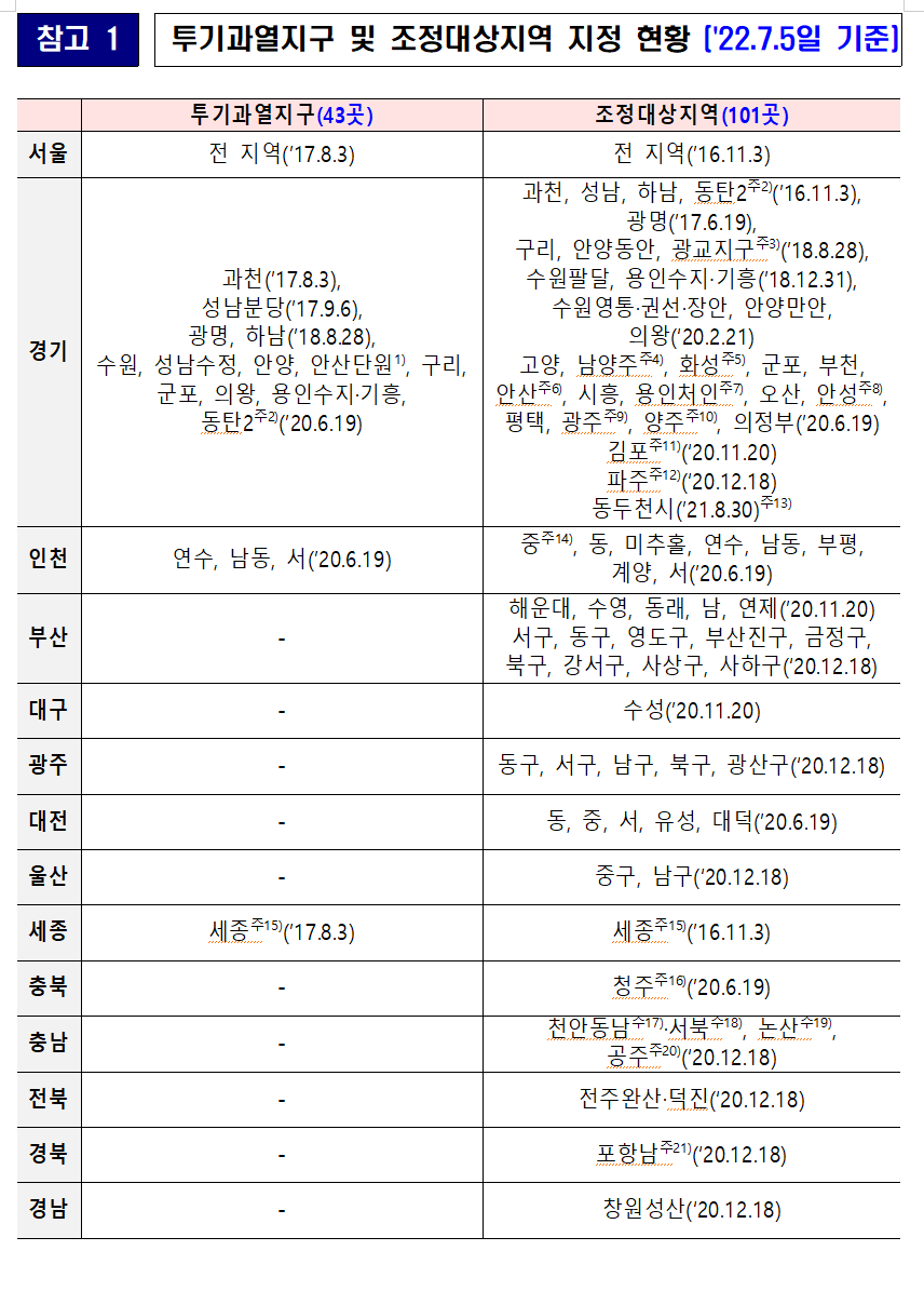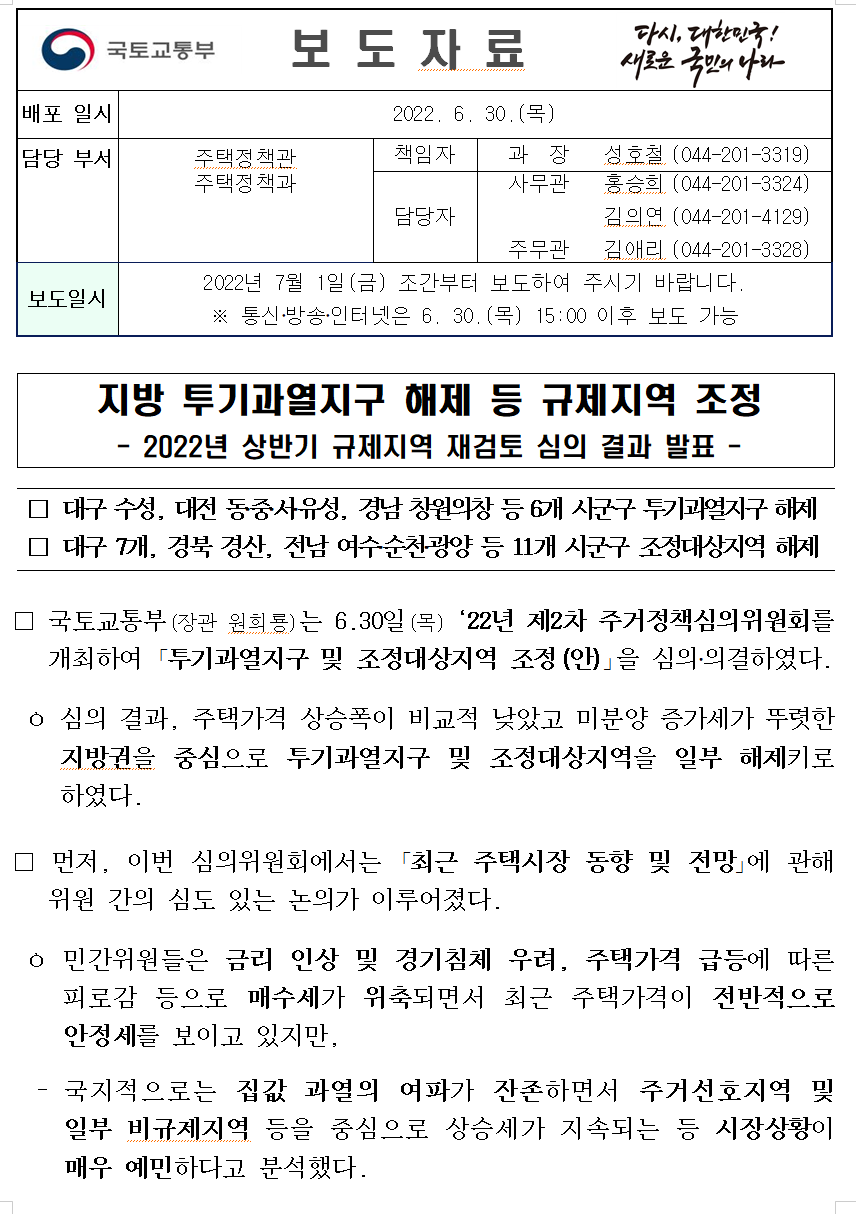 2022년 상반기 규제지역 재검토 심의 결과 발표