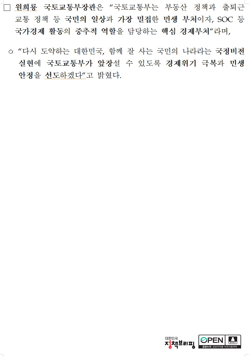 국토교통부 업무보고 브리핑문